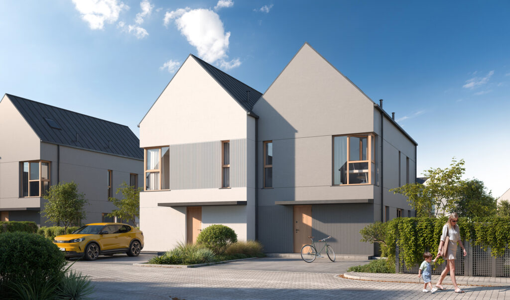 32 domy o powierzchni od 110 do 128 m², planowane jest na lipiec 2027 roku. Obecnie trwają prace związane z przygotowaniem terenu pod budowę i organizacją jej zaplecza.